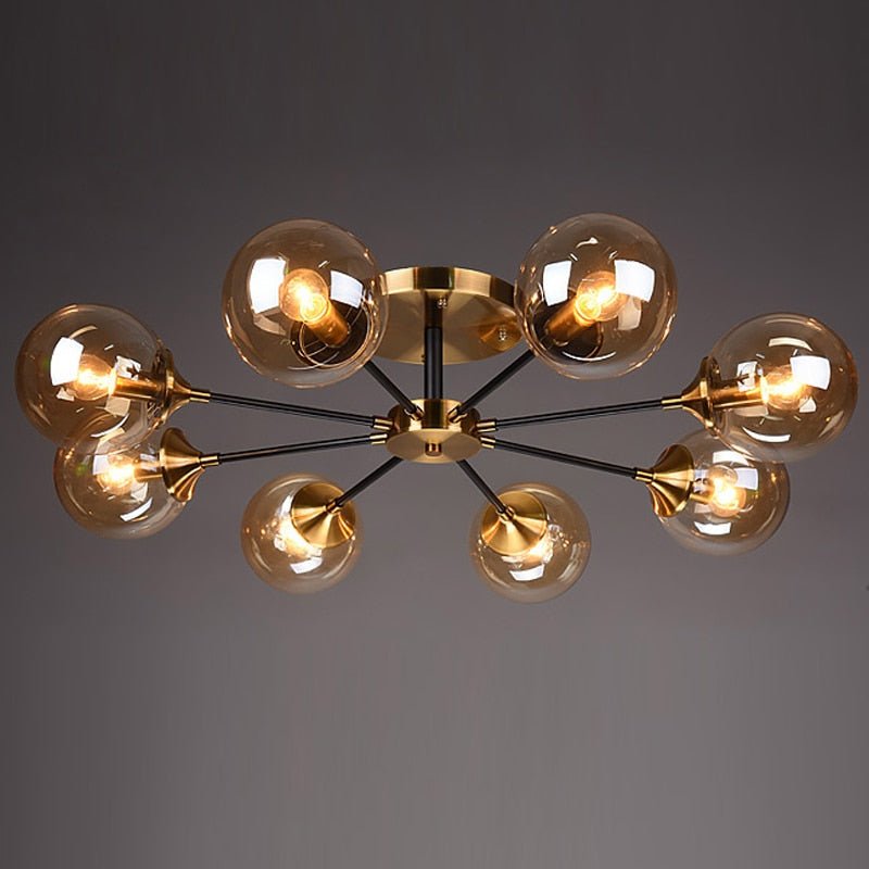 Żyrandol sufitowy E27 z miedzi i szkła z regulacją jasności do wnętrz